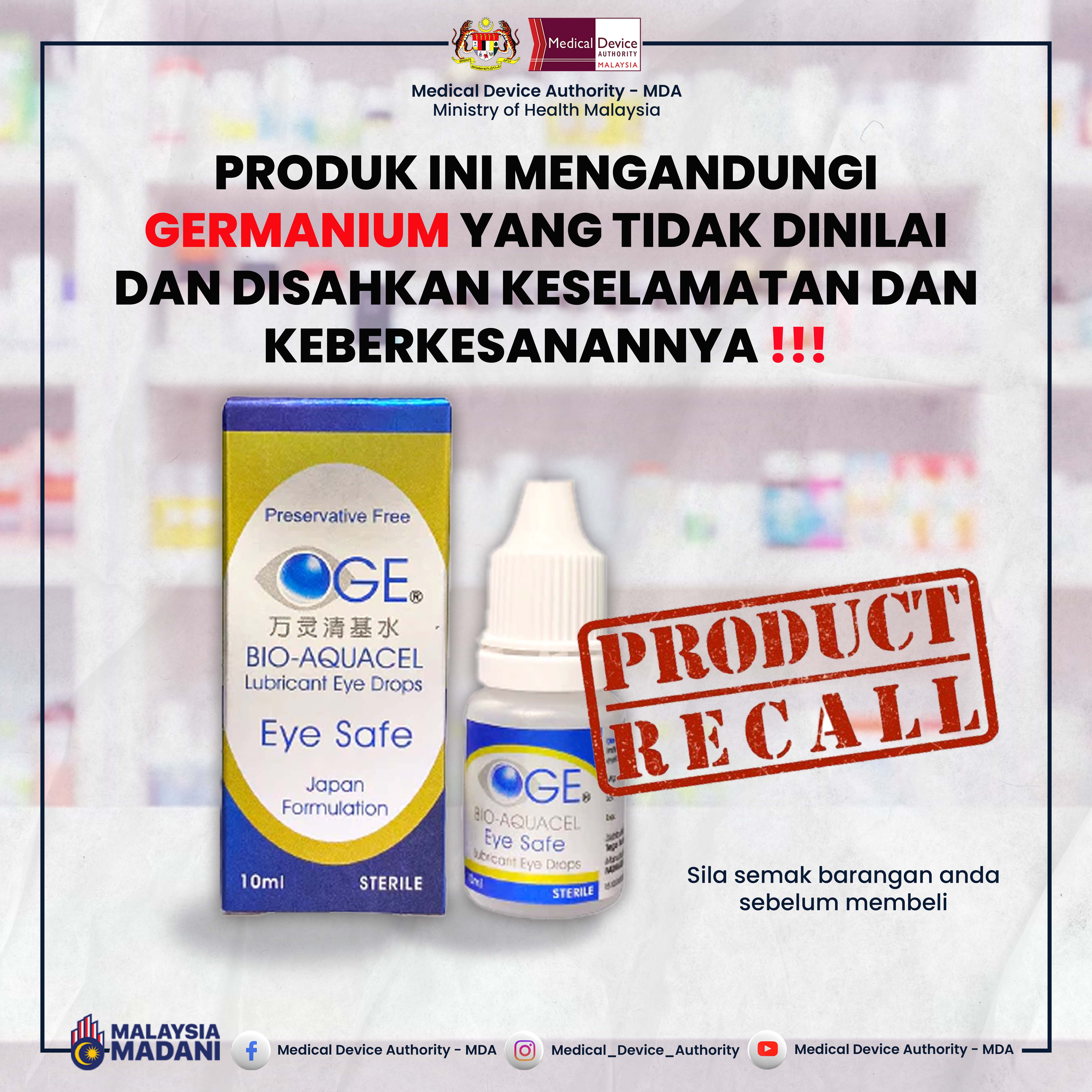 Pengguna disarankan untuk menghentikan penggunaan produk ini dan dinasihatkan untuk berjumpa pengamal kesihatan sekiranya mengalami sebarang masalah yang mungkin berkaitan dengan penggunaan produk ini. Semua pengedar dikehendaki menghentikan penjualan produk ini dengan serta merta dan memulangkan produk kepada pengeluar.
