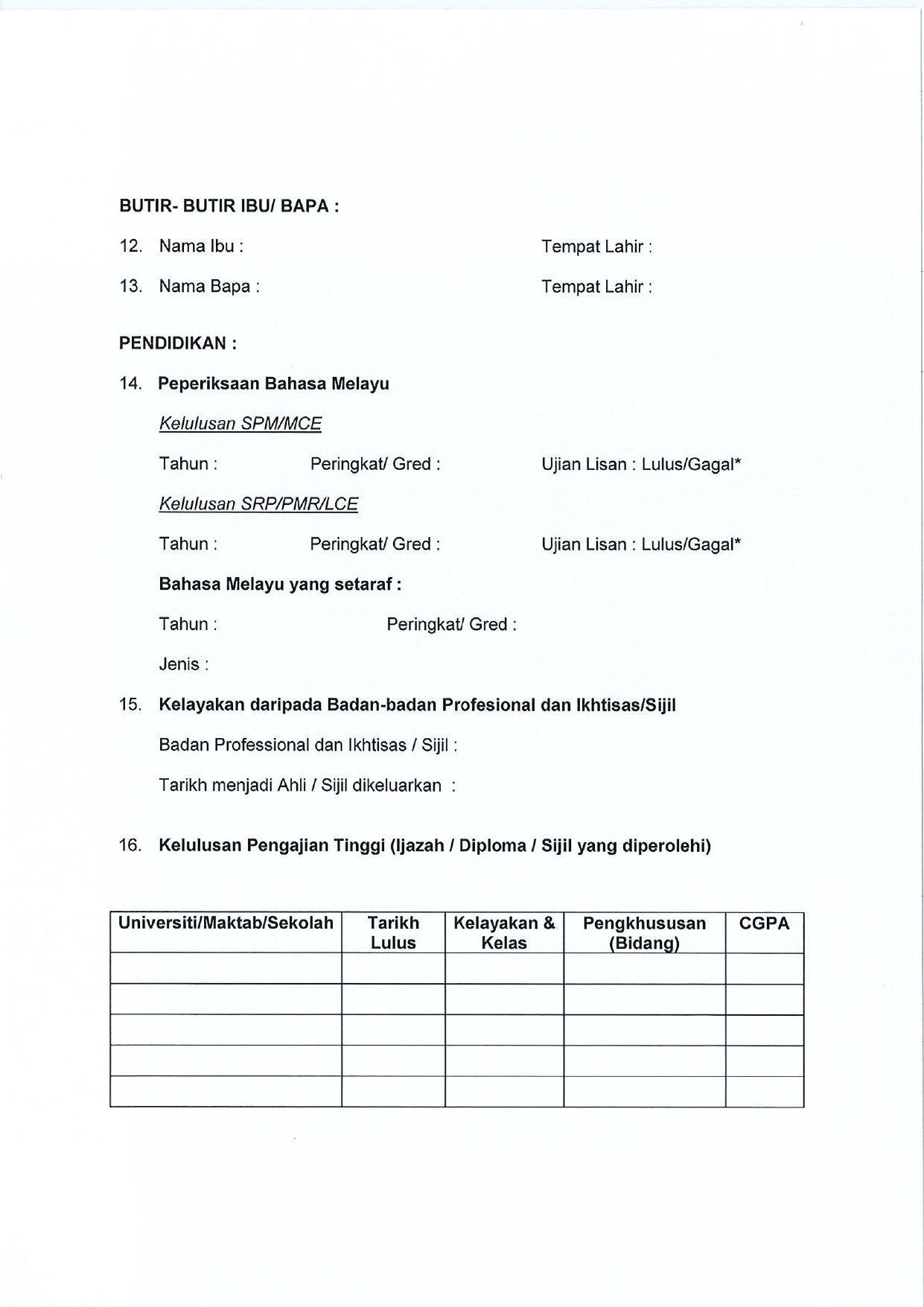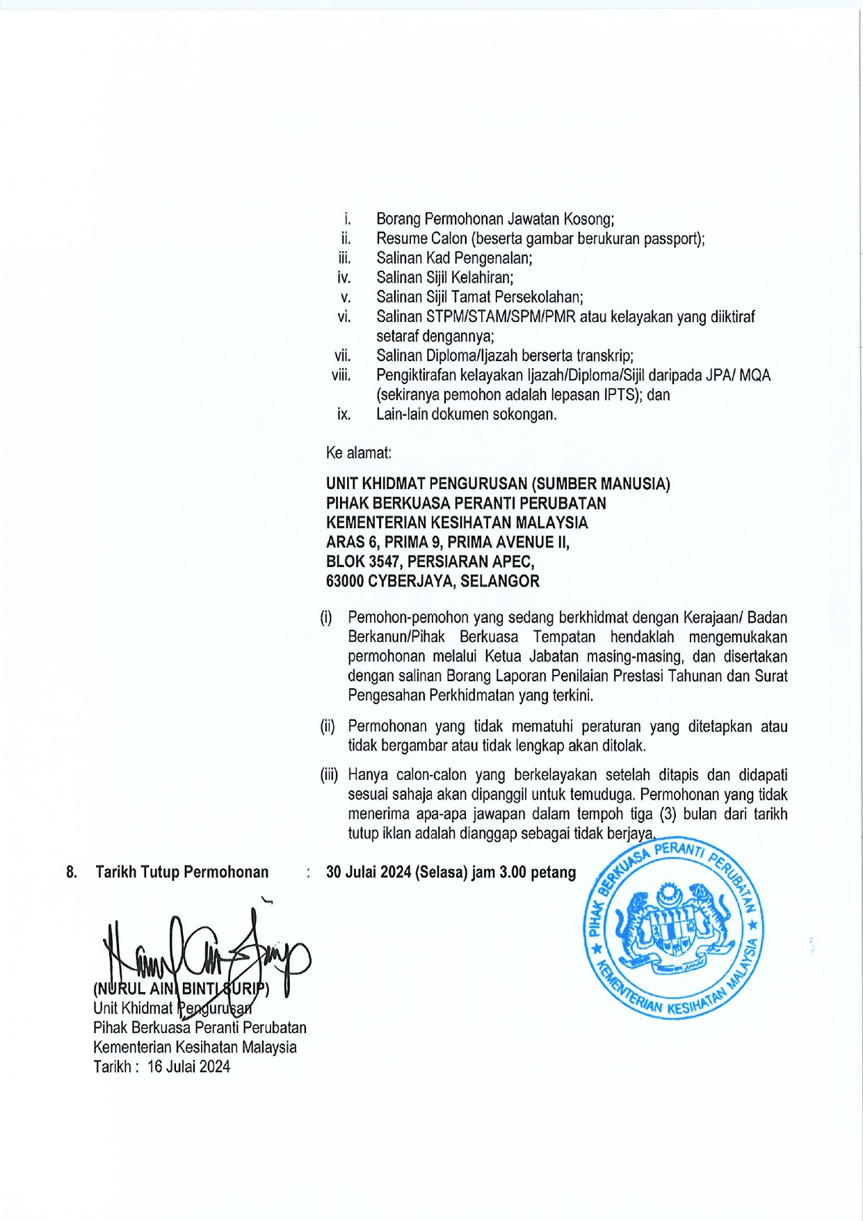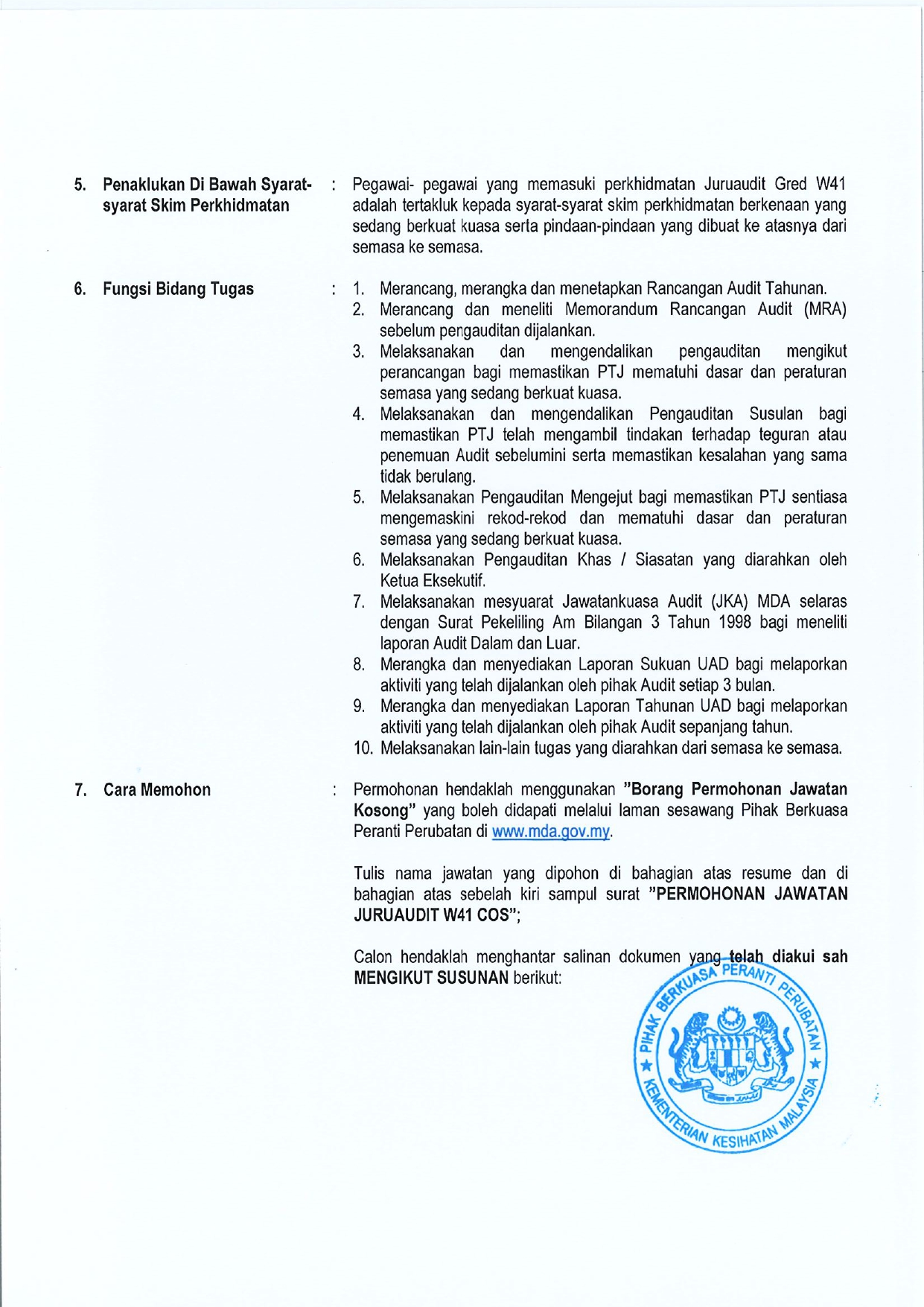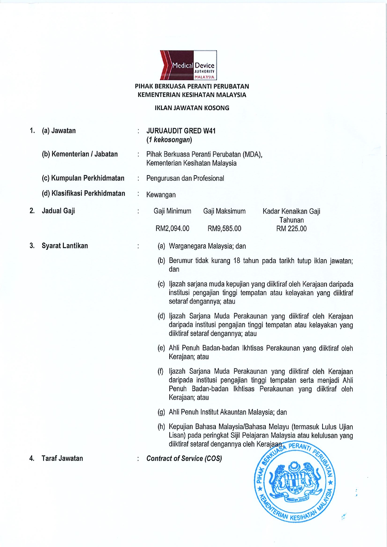 IKLAN JAWATAN JURUAUDIT GRED W41 (Contract of Service)